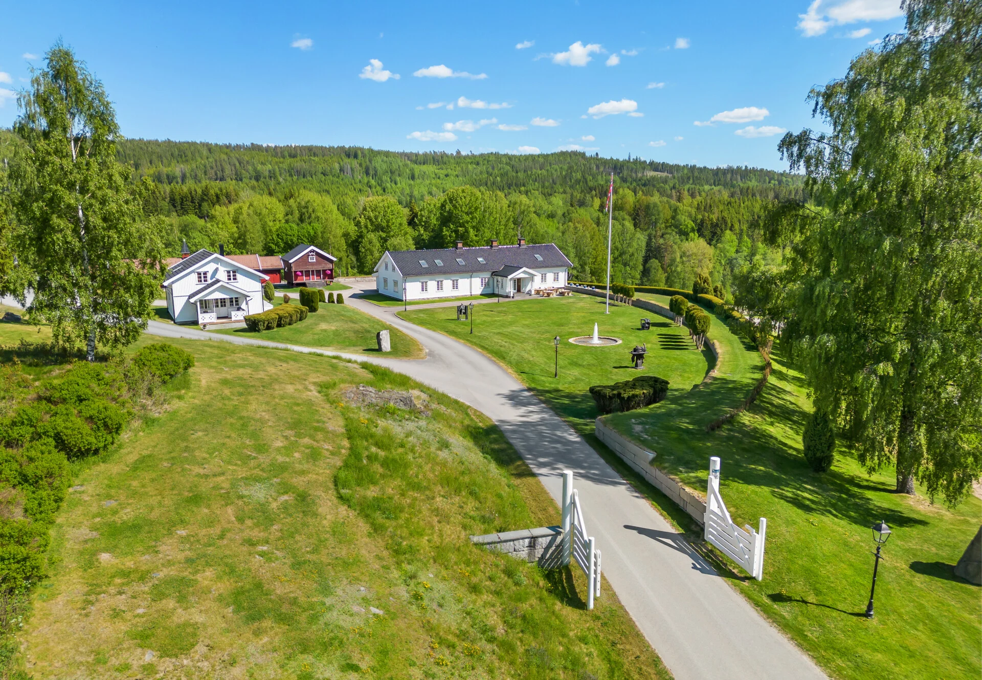 Gårdstunet ligger på et høydedrag med utsikt mot svenskegrensen omkranset av gårdens nesten 40 000 dekar skog og naturområder.