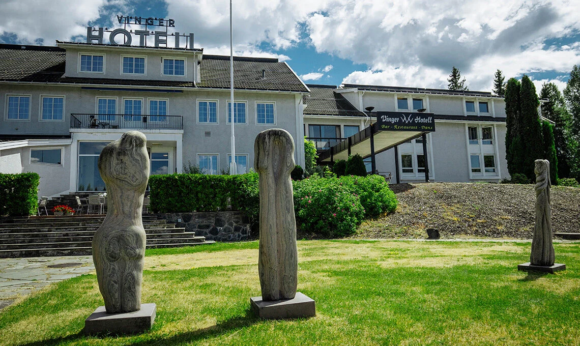 Vinger Hotell ligger sentralt og diskret tilbaketrukket i en privat park i Kongsvinger, med utsikt over byen, Kongsvinger Festning og Glomma.